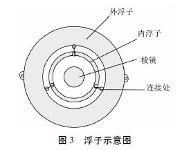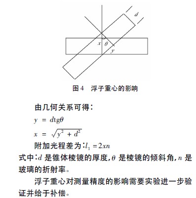 如果浮子重心不在它的幾何重心上,那么內(nèi)浮子里的全反射棱鏡就會(huì)傾斜,如圖4所示。