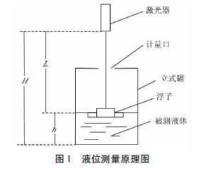綜合考慮各方面要求,該設(shè)計(jì)方案選用雙頻激光干涉儀作為液位測(cè)量設(shè)備。如圖1所示,雙頻激光干涉儀的發(fā)射器豎直地置于儲(chǔ)罐頂部,激光透過(guò)儲(chǔ)罐頂部的玻璃照射到浮子上。浮子上的全反射棱鏡(錐體棱鏡)將照射來(lái)的激光束按原光路反射回雙頻激光干涉儀內(nèi)的接收裝置。當(dāng)液位變化時(shí),浮子隨液位的上升而上升,隨液位的下降而下降。激光發(fā)射器到浮子的距離也就發(fā)生了變化。由此,利用雙頻激光干涉儀的測(cè)量原理測(cè)量液位。其液位高度計(jì)算公式為:h=H-L