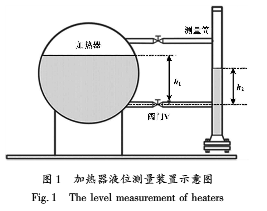 假設(shè)一個(gè)加熱器的液位測(cè)量裝置如圖1所示,由于側(cè)裝磁翻板液位計(jì)中的水溫低于加熱器中的水溫,水溫下降會(huì)導(dǎo)致水的密度上升,水的密度上升會(huì)產(chǎn)生兩個(gè)相反的作用: