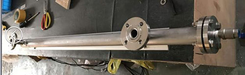 3、焊接法蘭,對主管頂端封頭進行焊接;法蘭和通液管的連接(焊接)并矯正兩法蘭的水平度