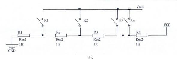 傳感器部分由串聯的電阻構成,電阻一端接電源。另一點接地,每個電阻分得的電壓是
