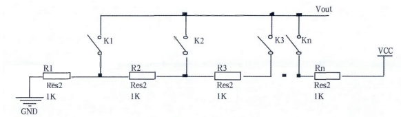 傳感器部分由串聯(lián)的電阻構(gòu)成,電阻一端接電源。另一點接地,每個電阻分得的電壓是
