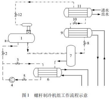 1 螺桿式制冷機(jī)組制冷原理及工作流程