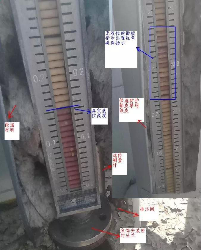 現(xiàn)場使用的浮子液位計常常會出現(xiàn)面板的磁珠指示不準(zhǔn)確,液位指示不連續(xù),代表液位的紅色磁珠中有白色顯示,空液位的白色磁珠中有一部分是紅色液位指示,情況糟糕的時候紅白磁珠雜亂不堪。