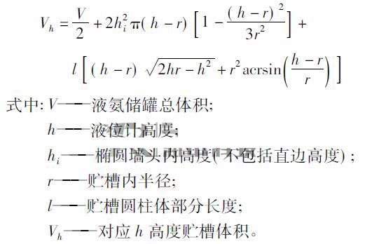 將2#~6#氨罐尺寸代入上式后,體積就與氨罐的液位一一對應了,液位由差壓液位計進行測量,*終求得體積。