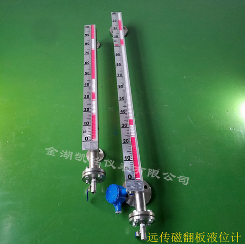 金湖凱銘儀表有限公司生產的磁翻板液位計的*顯著特點是液體介質與指示器完全隔離,所以在任何情況下都非常安全、可靠、耐用,而且各種型號的液位計配上液位報警、控制開關,可實現液位或界位的上、下限越位報警,控制或連鎖;配上靜壓式液位變送器或干簧-電阻式液位變送器,可將液位,界位信號轉換成二線制4-20mADC標準信號,實現遠距離指示、檢測、記錄與控制。適用于腐蝕性介質且工作溫度又較高場合的液位測量,結構可靠,使用壽命長。是硝酸等強腐蝕性介質液位測量的*好選擇。為客戶量身定制,對溫度和壓力要求不高的可以使用本公司的PP材質的液位計。該系列液位計可廣泛適用于電力、石油、化工冶金環保、船舶、建筑、食品等各行業生產過程中的液位測量與控制。