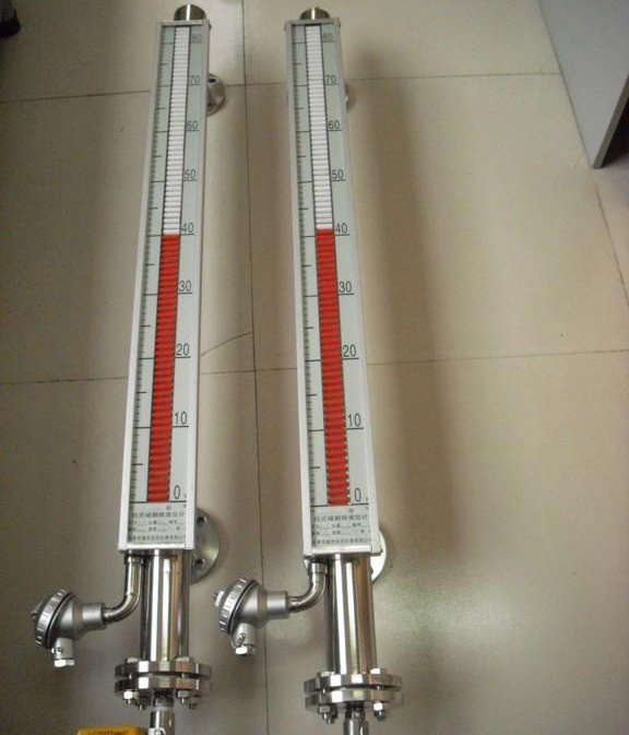根據浮力原理,浮子在測量管內隨液位的升降而上、下移動,浮子內的永久磁鋼通過耦合作用,驅動紅、白色翻柱翻轉180°,液位上升時翻柱由白色轉為紅色,下降時由紅色轉為白色,從而實現液位指示。